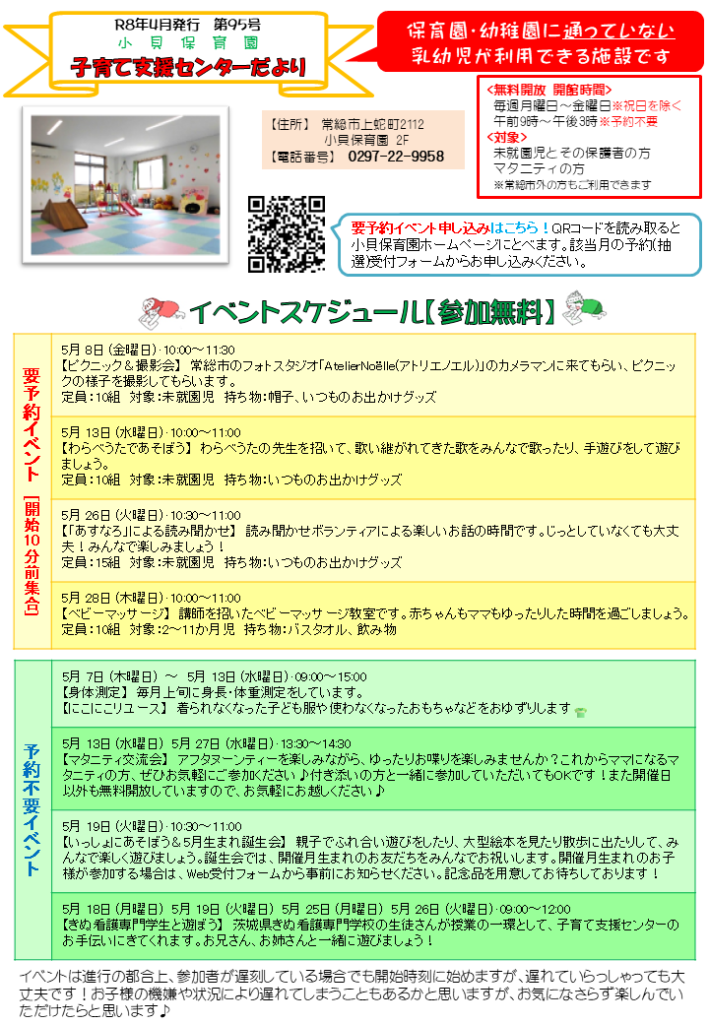 子育て支援センター令和8年5月のイベント予約(抽選)受付を開始いたします。